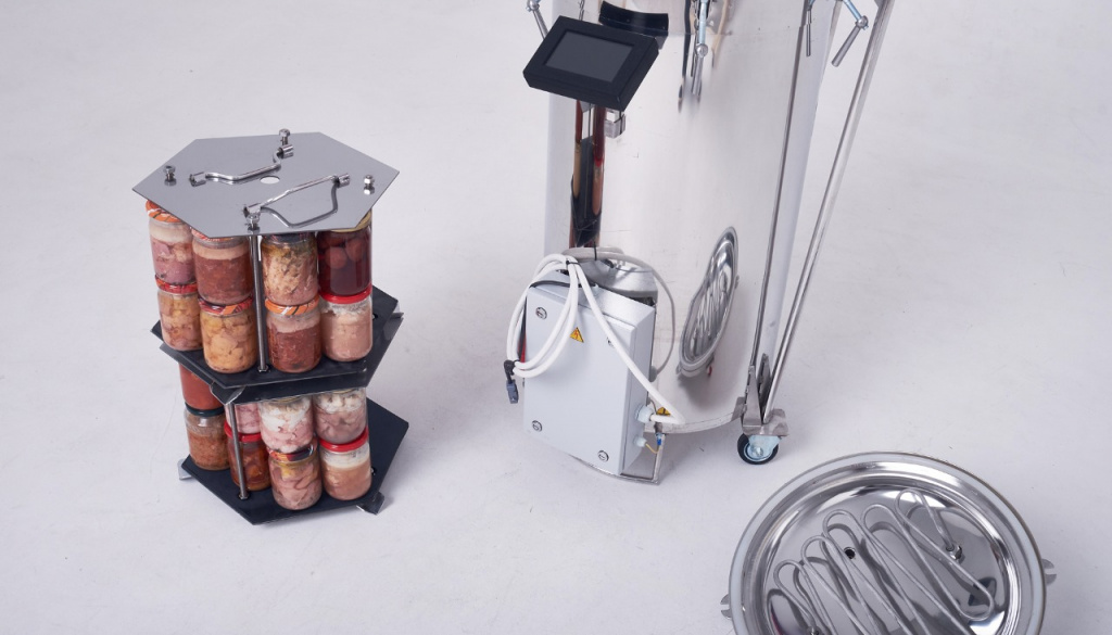 Электрический автоклав из пищевой нержавеющей стали AISI 304 полностью автоматизирует процесс стерилизации. Четыре сенсорных режима — «Мясо», «Птица», «Рыба», «Компот» — а также возможность сохранения до 10 собственных программ.